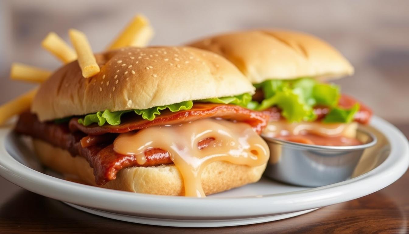 The pulled pork sandwich is another top choice. It combines juicy pork with BBQ sauce and crispy onions. It’s perfect for those who love meat.